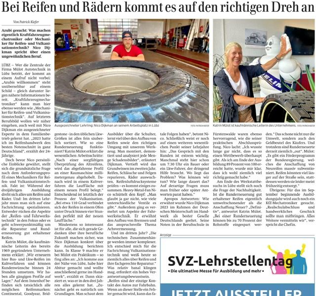 Ein aktueller Zeitungsartikel im Juli hat unsere Arbeit in der Reifen- und Rädertechnik vorgestellt und geziegt wie vielfältig und anspruchsvoll dieser Beruf ist. Von der Montage über die Reparatur bis hin zum Umgang mit großen Spezialrädern - hier ist technisches Know.How, Präzision und Verantwortungsbewusstsein gefragt.